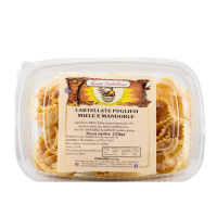 Cartellate pugliesi arricchite con miele e mandorle, un perfetto equilibrio di dolcezza e croccantezza che richiama le feste e le tradizioni locali.